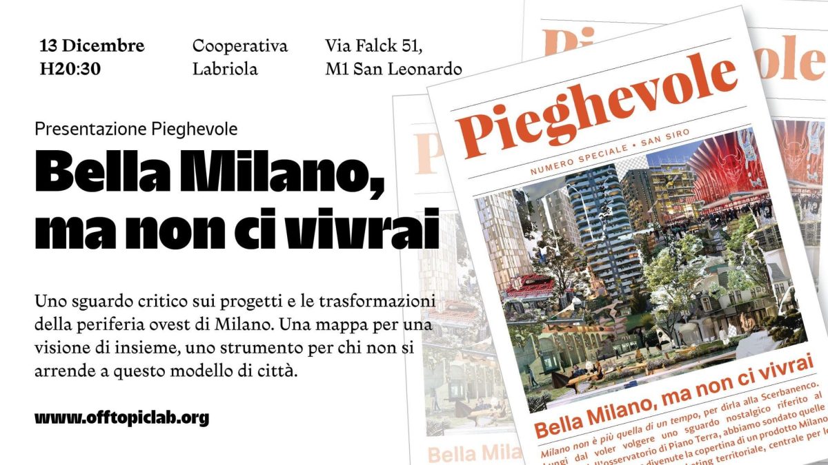 L’esito di questo lavoro, al momento solo cartaceo ma prevediamo anche una versione digitale, è un nuovo strumento per la cassetta degli attrezzi delle attiviste e degli attiviste metropolitane: PIEGHEVOLE. Il primo numero è dedicato alla “Grande San Siro”, uno sguardo critico sui progetti e le trasformazioni della periferia ovest di Milano. Una mappa per una visione di insieme, uno