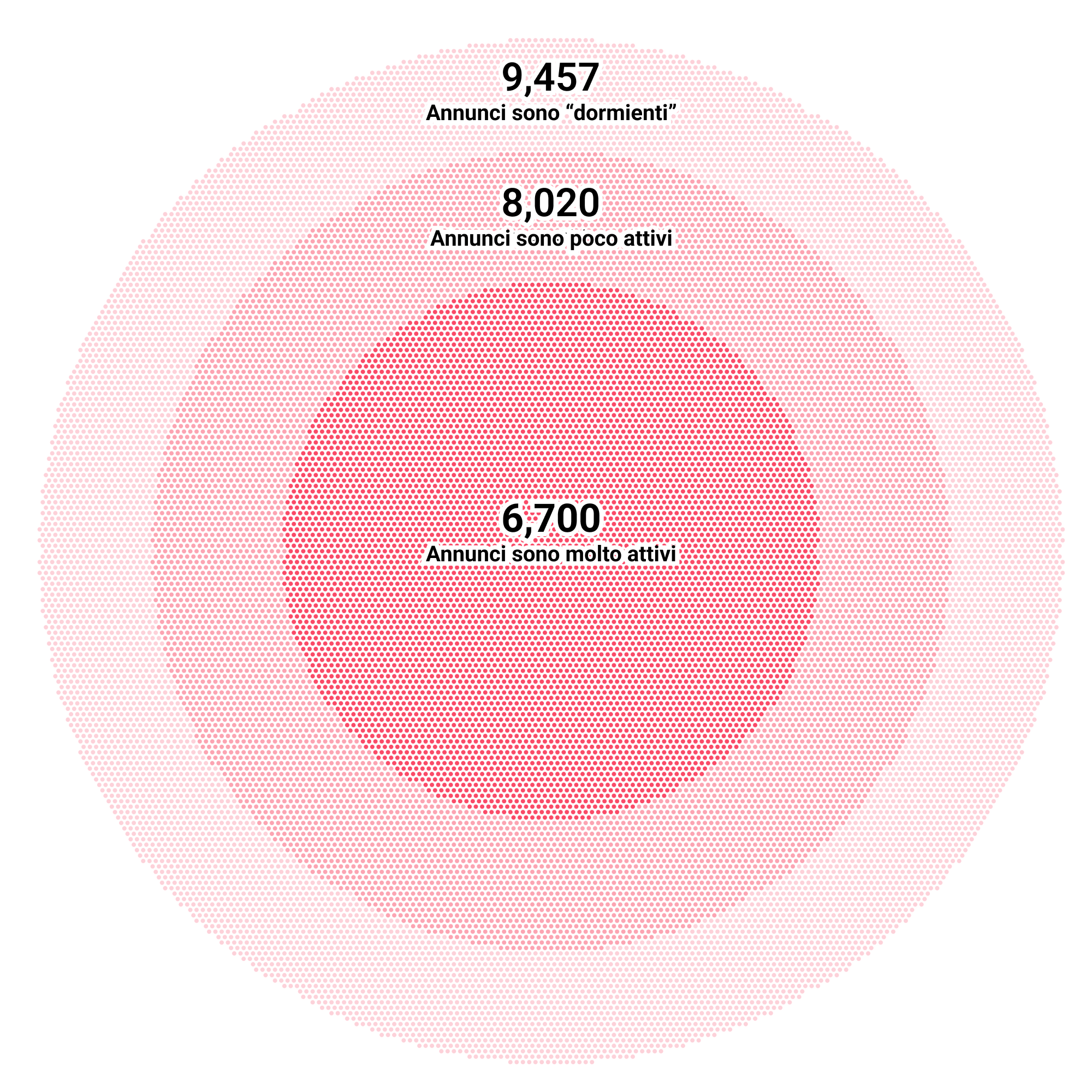 Attraverso il loro numero e le date in cui sono state pubblicate possiamo ipotizzare, partendo dalla metodologia di ricerca di InsideAirbnb, la seguente suddivisione degli annunci:
