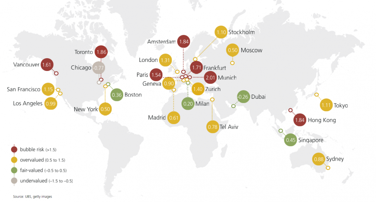 Secondo l’Ubs Global Real Estate Bubble Index Milano non rientra nelle città a rischio crollo, ma definisce una crescita al netto dell’inflazione dei valori immobiliari dell’1%, al di sotto del 2007 (motivo per cui crede ci sia ancora margine, ma nota che negli ultimi 15 anni i valori sono cresciuti meno che nelle altre città monitorate). C’è poi la questione dei valori immobiliari commerciali, che potrebbe esplodere da un momento all’altro poiché, in quell’ambito, si registra invece una svalutazione e questo pone problemi agli istituti bancari e alle SGR protagoniste dello “sviluppo” urbano meneghino.