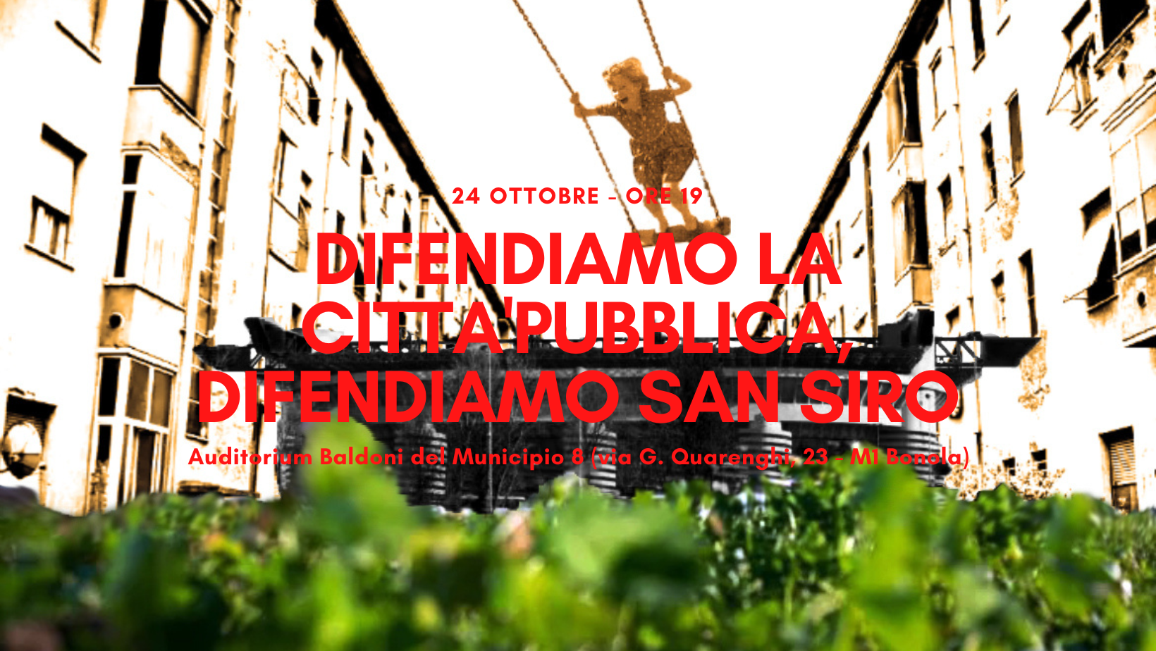 Il prossimo lunedì 24 ottobre alle ore 19 diamo appuntamento a tutte le realtà cittadine contrarie all’operazione-truffa di abbattimento del Meazza di San Siro, in occasione del nuovo incontro del “dibattito pubblico” promosso dalla giunta Sala.