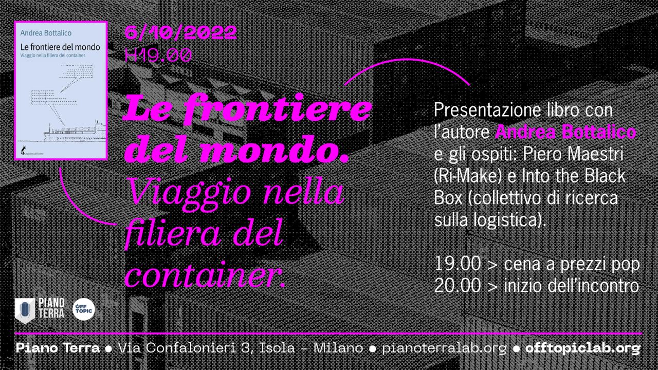 Giovedì 6 ottobre dalle 20 presentiamo il libro Le frontiere del mondo. Viaggio nella filiera del container con l’autore Andrea Bottalico (ricercatore, attivista e redattore di Napoli Monitor e Primo Maggio).