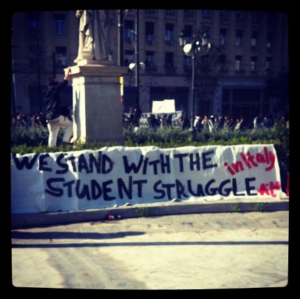 E’ esattamente questo che è successo la sera del 6 dicembre 2008 quando, in seguito all’uccisione di Alexis dentro Exarchia (quartiere che, come abbiamo visto, è sempre stato offlimits per la polizia), per oltre dieci giorni la combattività e il rifiuto di questi giovani esclusi si è manifestata violentemente e con un’estensione che ha colto alla sprovvista istituzioni, polizia ed opinione pubblica. Ed è esattamente questo che è successo anche nella rivolta di massa che dal maggio 2010 ha caratterizzato la vita pubblica greca: le ragioni dell’anarchismo giovanile e dei vecchi gruppi antiautoritari, radicatesi tra chi non faceva parte delle formazioni politiche tradizionali (e delle loro ideologie) che si sono spartite la torta, sono riuscite a trovare comprensione anche in quella parte di classe media bruscamente privata di garanzie e diritti.