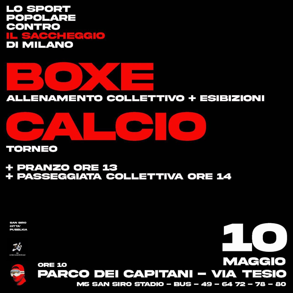 Ore 10-13: allenamenti ed esibizioni di boxe, torneo di calcio al Parco dei Capitani. A cura delle reti di Sport popolare