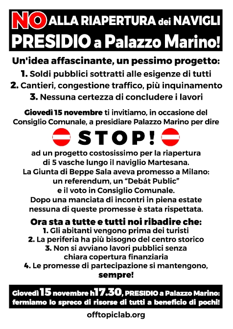 Giovedì 15 novembre dalle 17.30 sotto Palazzo Marino! [evento facebook!]