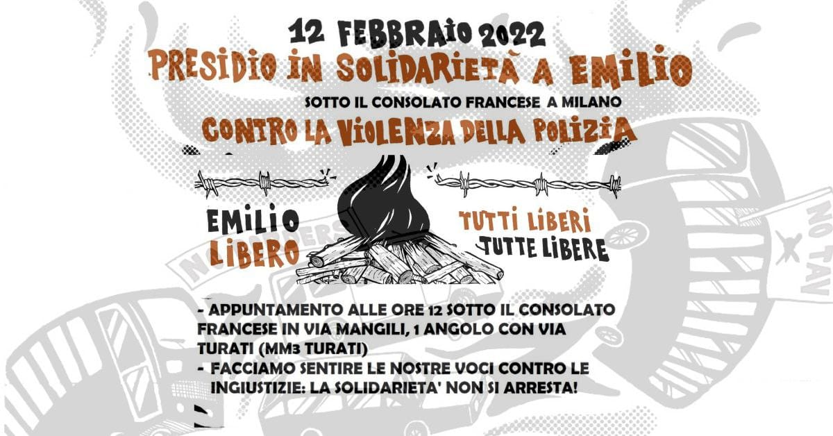 Il prossimo sabato 12 febbraio saremo davanti al consolato francese di Milano in solidarietà a Emilio Scalzo, un nostro compagno e fratello, attivista del movimento NO TAV e NO BORDER.