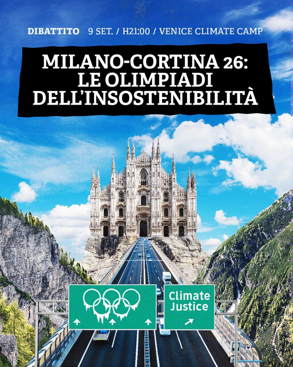 Sabato 9/9 h21 dibattito su Olimpiadi 2026 Milano-Cortina @VeniceClimateCamp