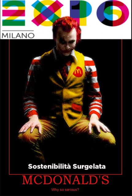 Come ampiamente pronosticato,  aumenta l’offerta di cibo e di marchi dell’agroalimentare all’interno del sito Expo ma, notizia degli ultimi giorni, pare ci sia il rischio siccità: a quanto pare, se la stagione estiva sarà torrida, il parco del Ticino, che verrà defraudato della propria acqua incanalata in direzione Expo  al alimentare il laghetto e i giochi d’acqua dell’albero della vita, rischia di rimanere senz’acqua. Un bel paradosso per il megaevento che dovrebbe nutrire il pianeta…E pensare che c’era (c’è ancora? Si, no, forse, non si capisce…) chi giustificava la via d’acqua per evitare allagamenti del Sito, peccato che nessuno si sia preoccupato del fiume e di quanti animali e persone, sull’acqua di quel fiume, ci campano. Forse si troverà una soluzione grazie al progetto “Fattore Futuro” di McDonald’s, la new entry della settimana. Anche il Junk Food ha diritto al greenwashing dopotutto, specie ora che l’immagine del marchi sembra offuscata per via del mostruoso caso di evasione fiscale su scala europea. Quindi a questo punto appuntatevi il secondo consiglio per nutrire il mondo: un bel BigMac Leggi tutto “Sostenibilità surgelata | Bollettino n.7”